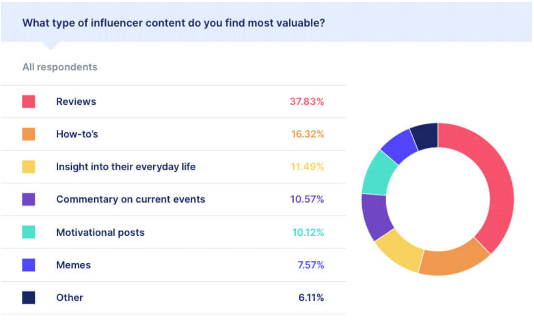 Gen Z women are a notable exception to this trend, with 23 percent ranking how-to’s as the most valuable, followed by motivational posts—not reviews. But nearly 40 percent of this demographic say a brand’s most effective way to win their trust is through direct interaction from the influencers.