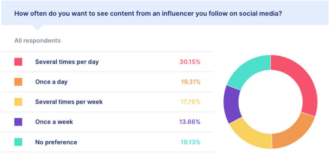 One out of three respondents said they would prefer to see content from an influencer they follow several times per day.