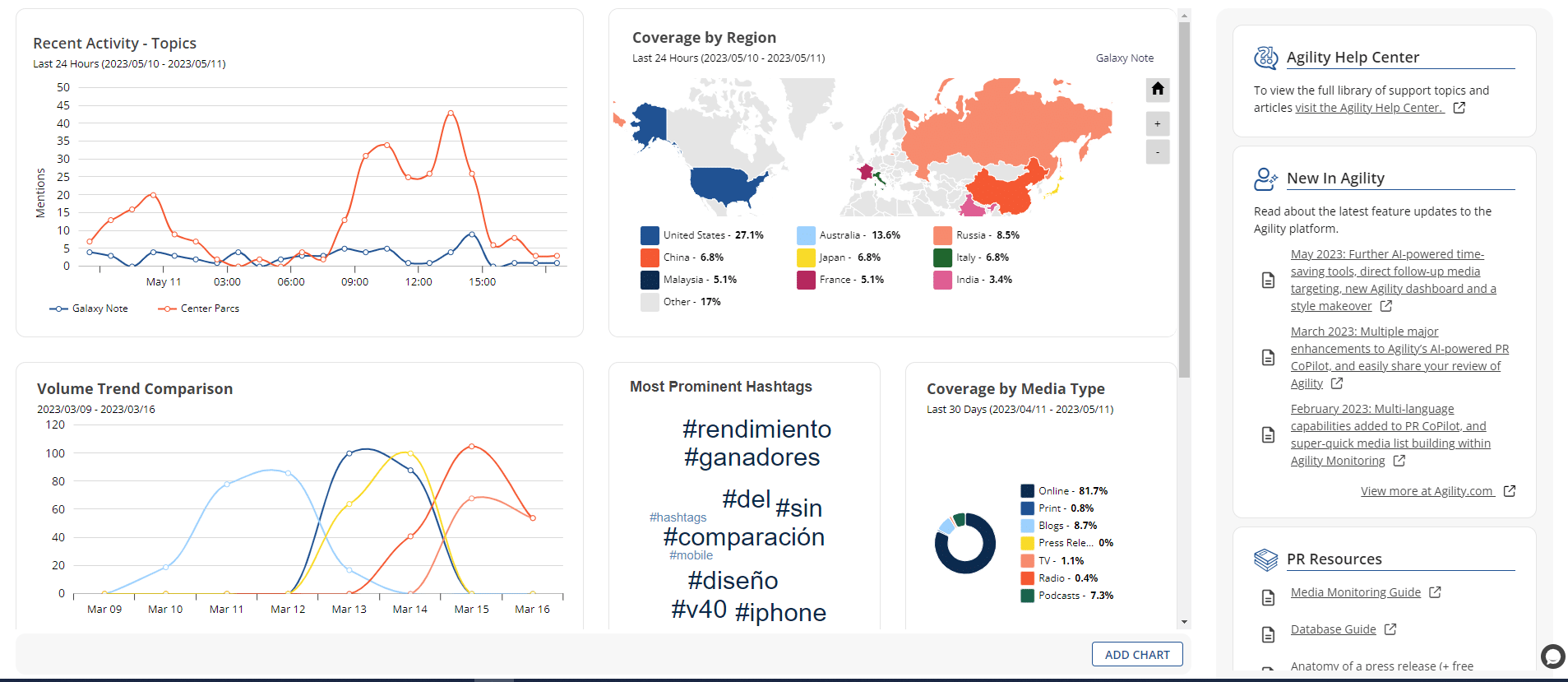 Coverage Surge Alerts: New coverage alert features have been introduced to allow you to be notified by email of any significant spikes in your media monitoring mentions. Customize these alerts to monitor increases in mention volume, sentiment, and impressions, while also fine-tuning the sensitivity and duration settings.