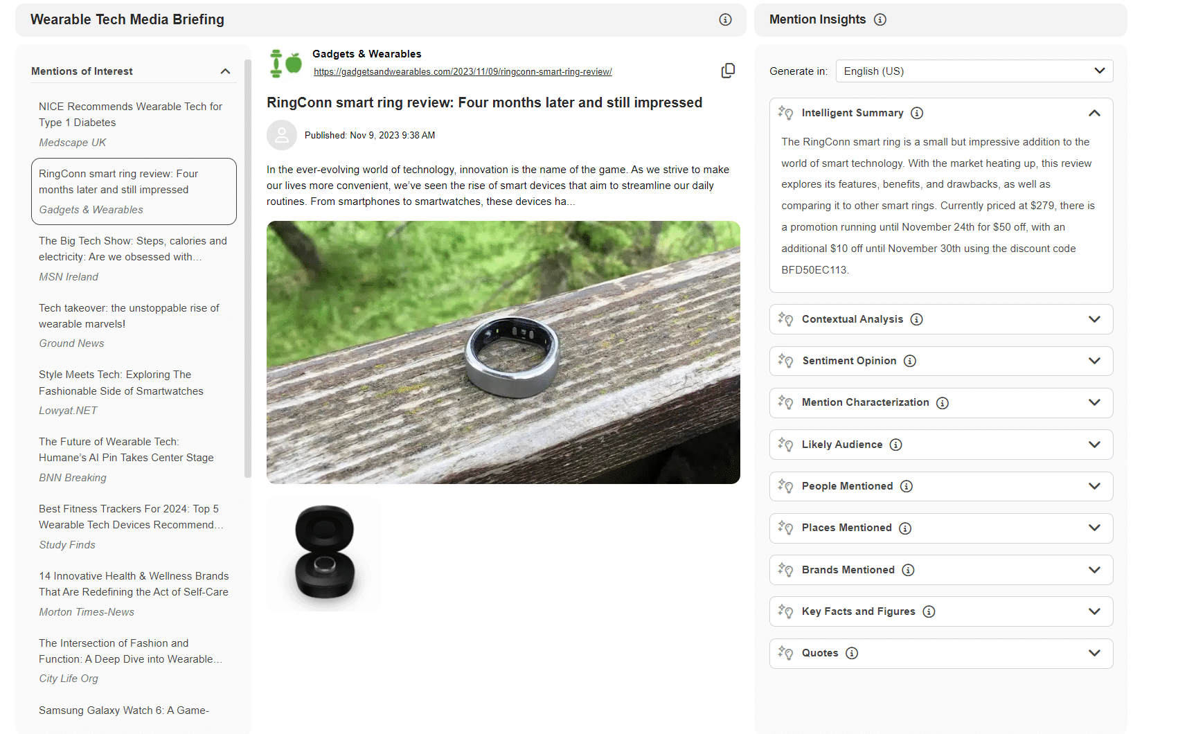 - You can also analyse the article with a focus on the context of your chosen keywords, the sentiment, key facts and figures and the likely audience. You can identify the brands, people and places mentioned, and ask for a chracterization of the mentions.