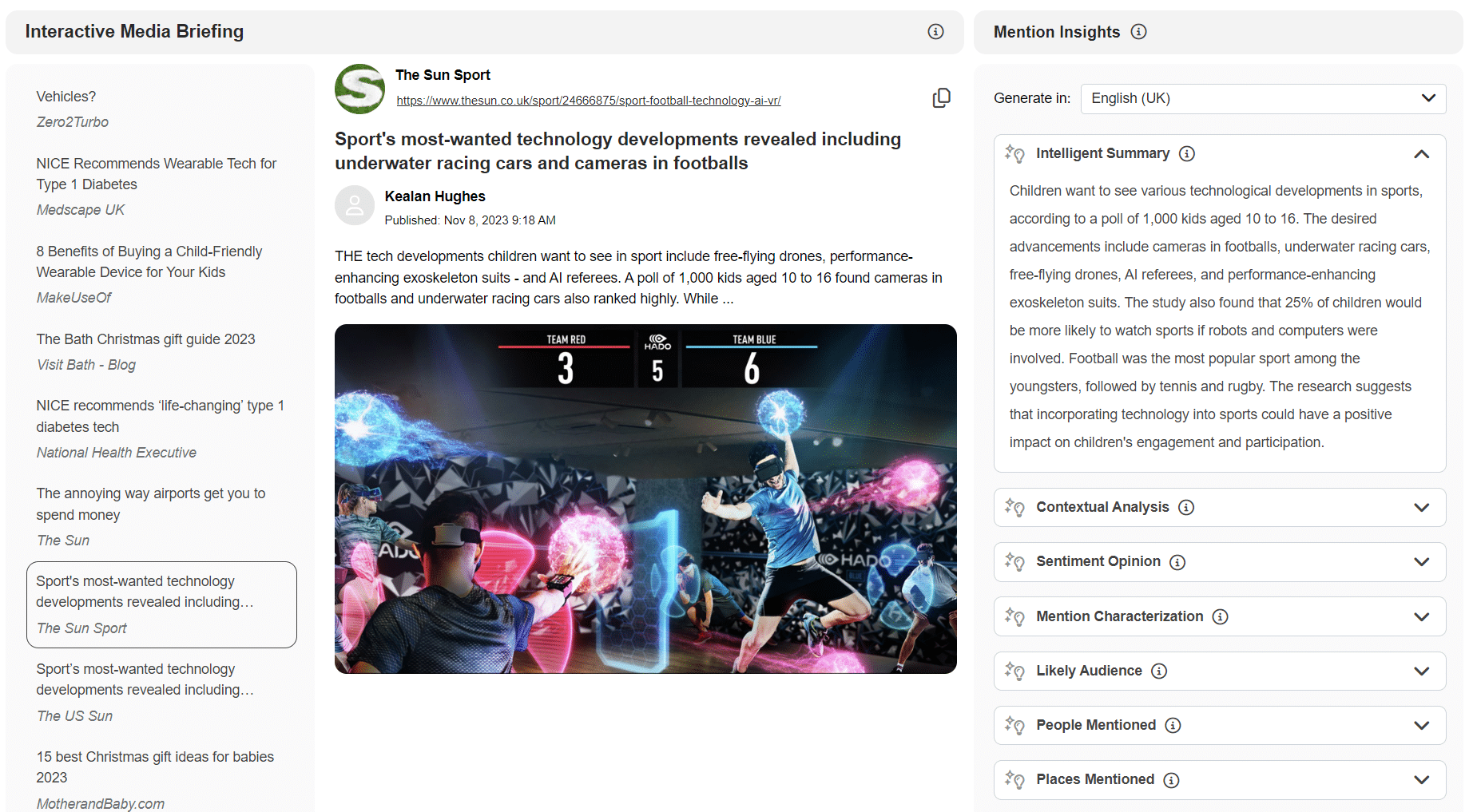 Now, Intelligent Insights includes 10 AI-powered funtions that give you the ability to immediately analyse and summarise your media coverage, and share it with colleagues and clients in interactive briefings that also allow them to apply their own analysis.