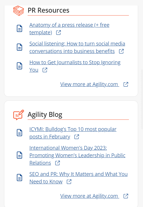 This month we have launched a new Agility dashboard, along with a range of UI and style updates. We have also added the option to use PR CoPilot to create Subject and Preview Text for your email distributions and use Agility’s email distribution reports to add batches of contacts directly to new or draft emails.