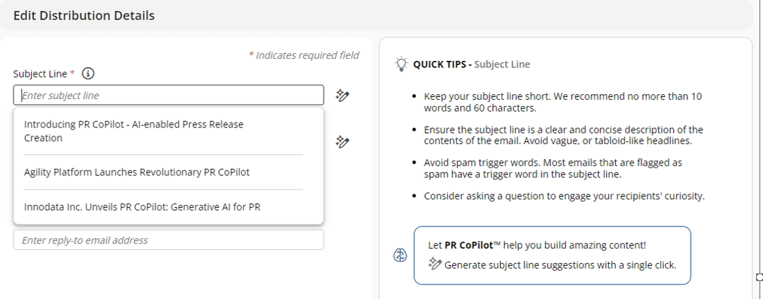 PR CoPilot subject line and Preview Text suggestions