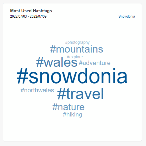 - Word Clouds displaying most used hashtags and handles in Reporting