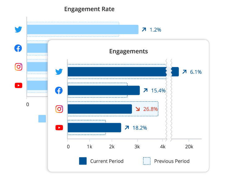 - Compare results against previous periods and across platforms for timely takeaways to inform future communications and marketing.