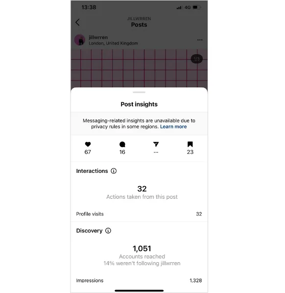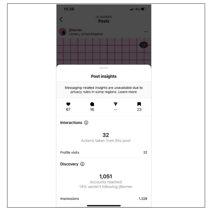 Native analytics of most channels, like the Instagram post insights below, aren’t nearly enough to track performance metrics that are important to you. Not unless you’re new to the data side of influencer marketing.