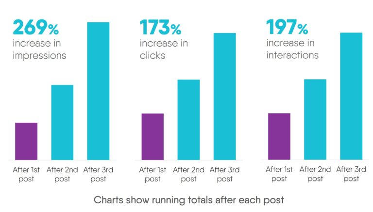 For instance, Mindstream Media Group used the graph above to summarize their findings on repromoting content to increase social media engagement.