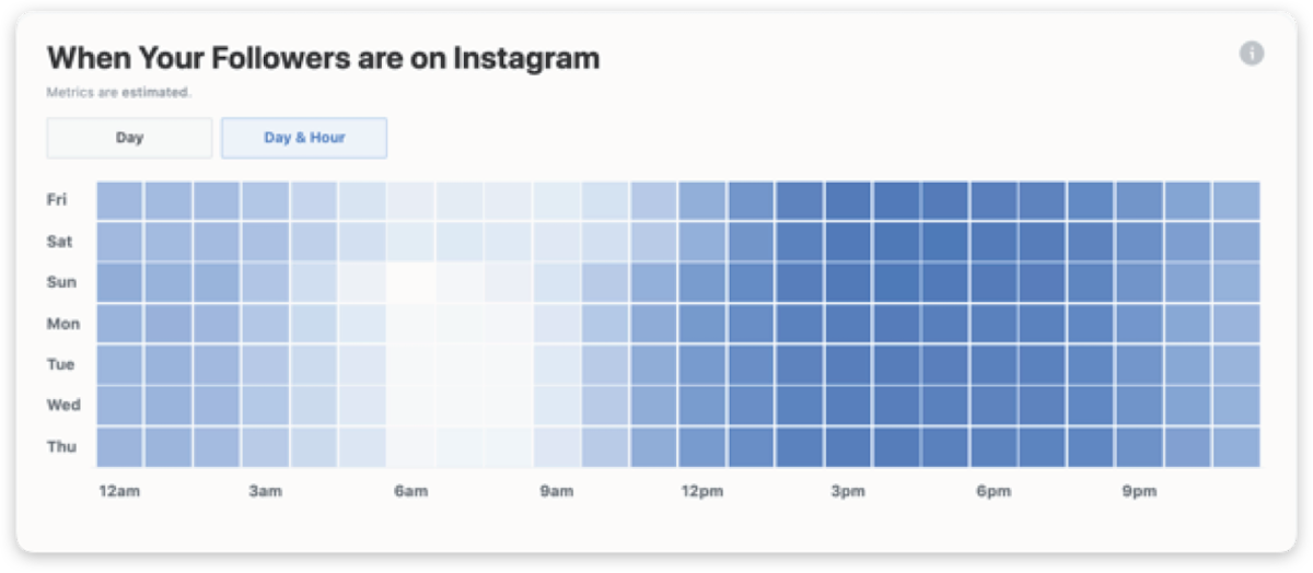 Facebook Creator Studio can also help you determine the busiest hours and days for your audience. In the image above, the darker blocks represent the times most of your followers are online. The lighter blocks mean there are fewer people online. With this tool, then, you can determine the times you want to be online to engage with your audience through comments.