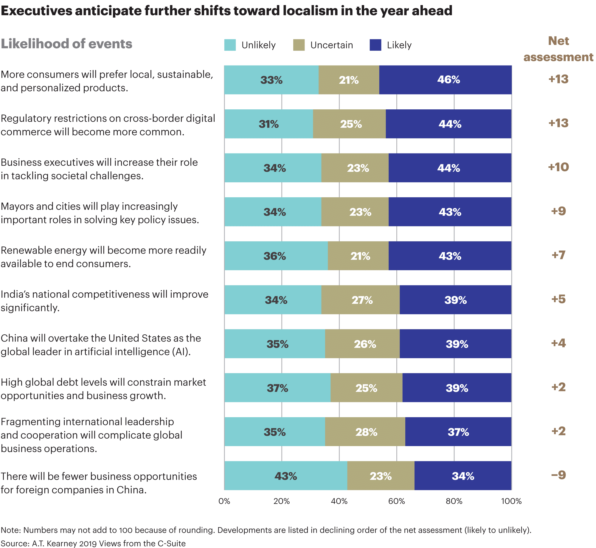 In the year ahead, executives will need to recalibrate their strategies for multi-localism, respond to changing consumer preferences, clearly define priorities in talent management, set realistic expectations for AI, and manage geopolitical risk. “Companies must adapt to the shifts in consumer preferences as well as those in the broader geopolitical and technological landscape,” says Courtney Rickert McCaffrey, manager of thought leadership for the Global Business Policy Council and co-author of the study. “The most successful companies will set realistic expectations for new technologies in the short term while building a strong workforce that is capable of realizing the full potential of these advances for years to come.”