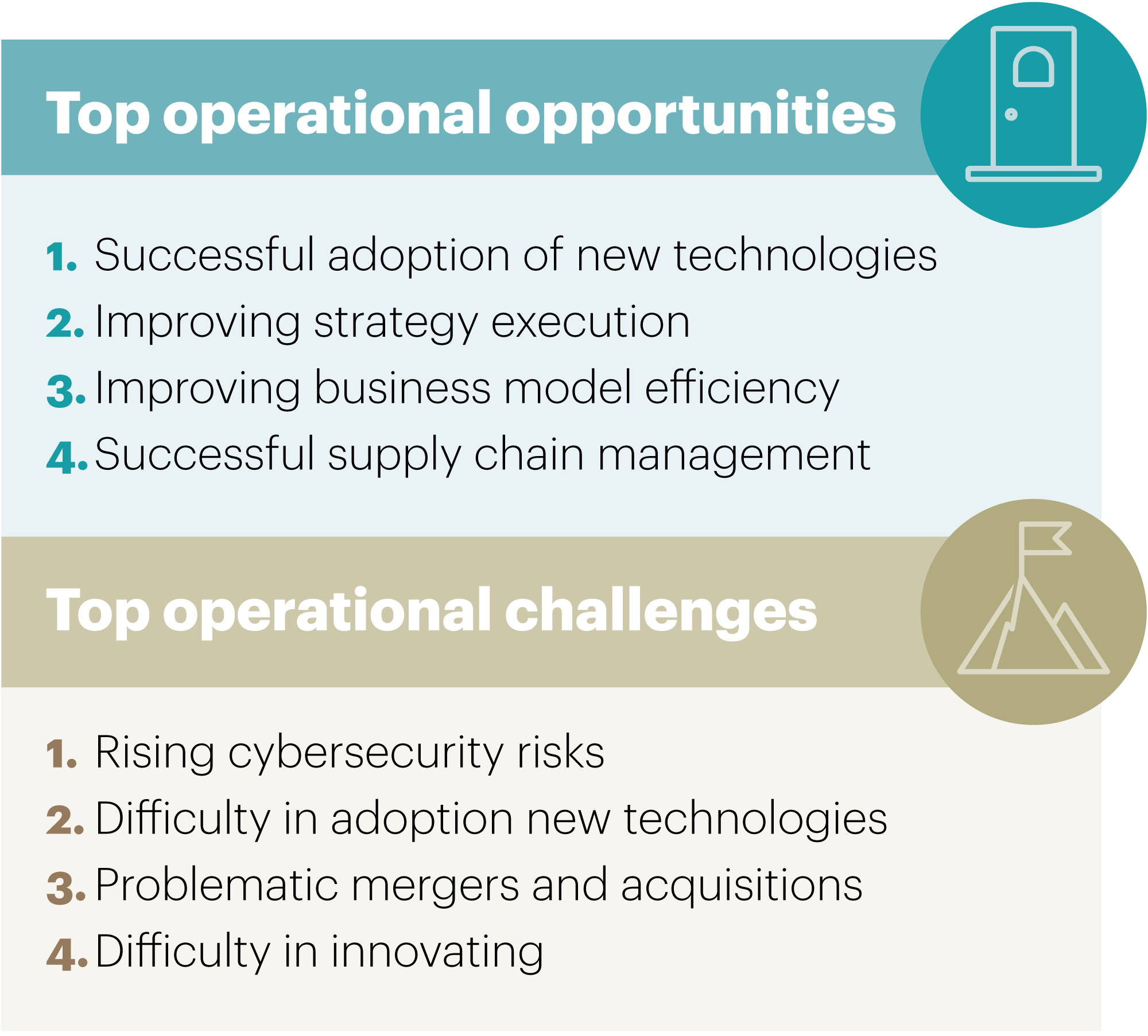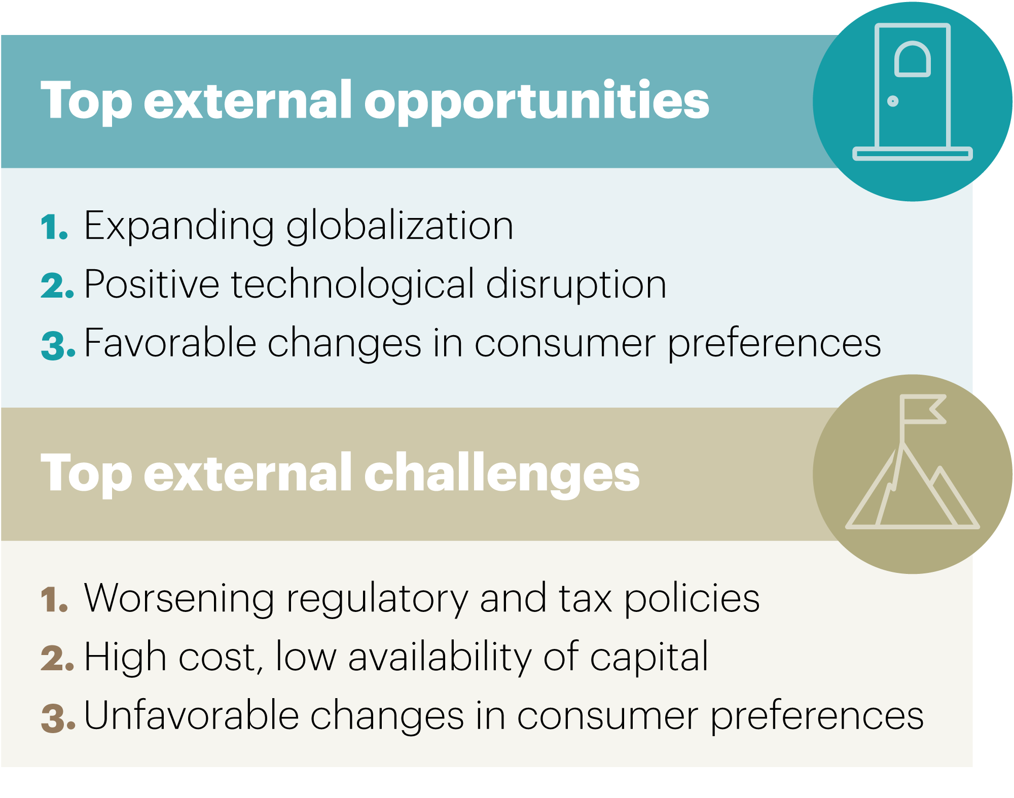 In this annual Views from the C-Suite survey, nearly 450 company leaders were asked to assess what they see as the leading opportunities and challenges in the global business operating environment over the next 12 months.