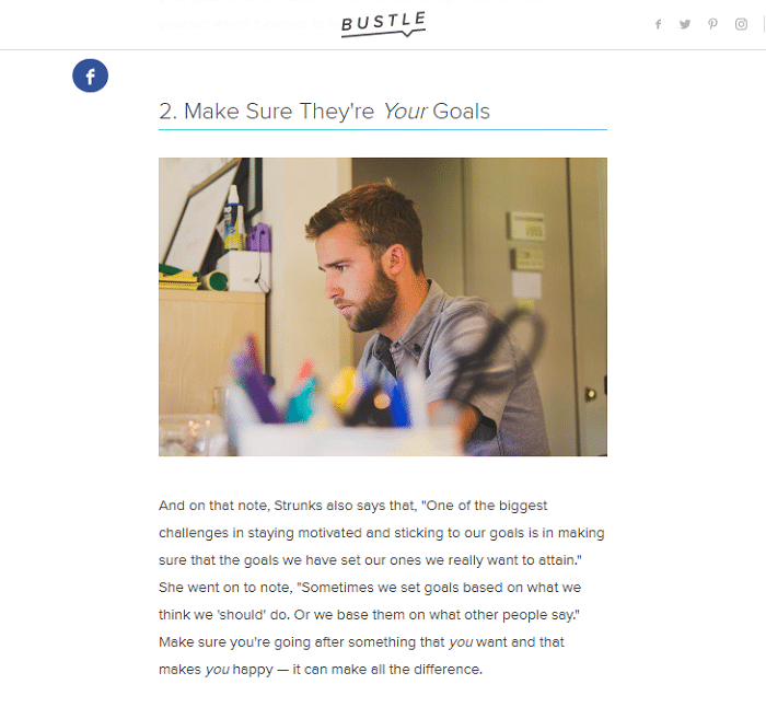 For example, in her post, ‘11 Ways to Stay Motivated & Focused to Achieve Your Goals’, author Toria Sheffield has quoted a motivational trainer, a business advisor and even a popular YouTube personality, thereby lending significant credibility to her content.