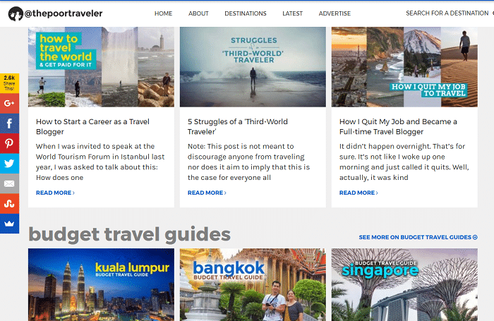 From destination-based travel guides to the most common traveling obstacles, they cover almost all aspects of a budget traveler’s life. The blog focuses on providing tips to budget travelers.