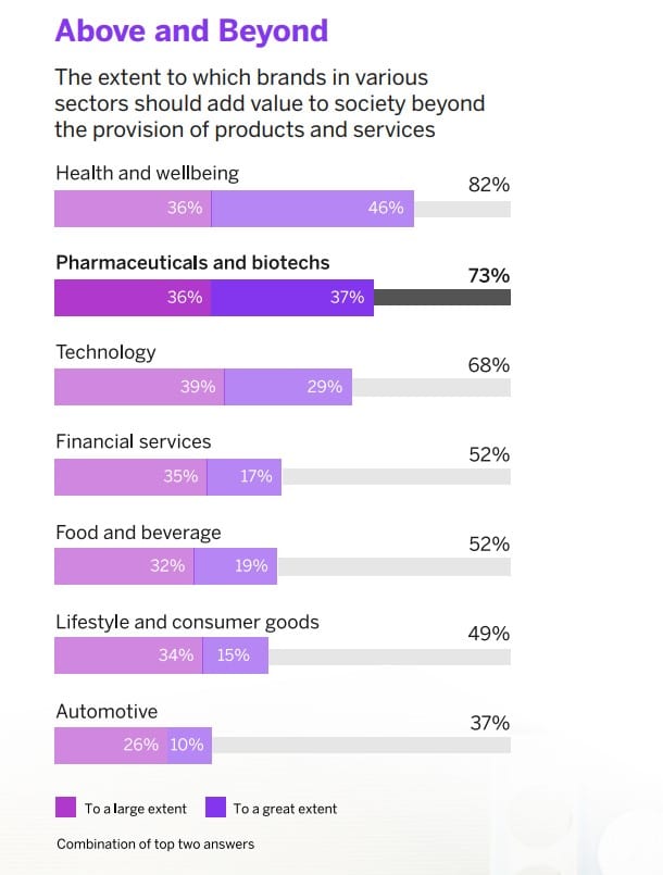 “The pressure on brands to deliver beyond their traditional remit has grown significantly in recent years—and no industry is feeling it more than healthcare,” said Hudson. “Developing new treatments will always be at the heart of the pharma industry, but creating great medicines is only the start. Health brands can and should contribute in ways that enhance the entire health ecosystem in which they operate and then also go beyond it, using their influence to tackle social and environmental challenges.”